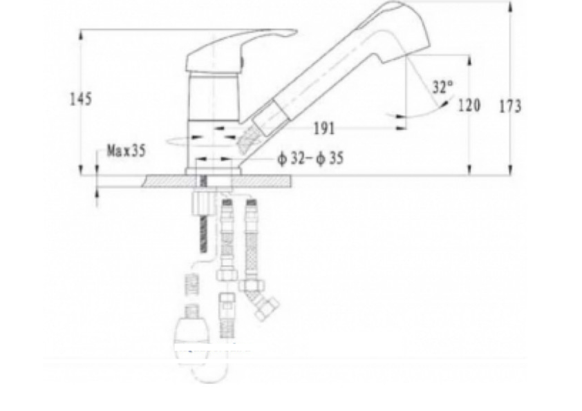 Встроенная в кран насадка на длинном гибком шланге с металлической оплеткой. Насадки с кнопкой могут переключать обычный излив воды на душ.