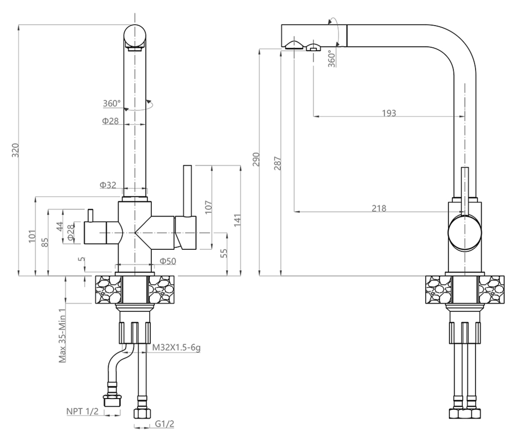 GranFest 3611, смеситель, хром Смеситель «под гранит»