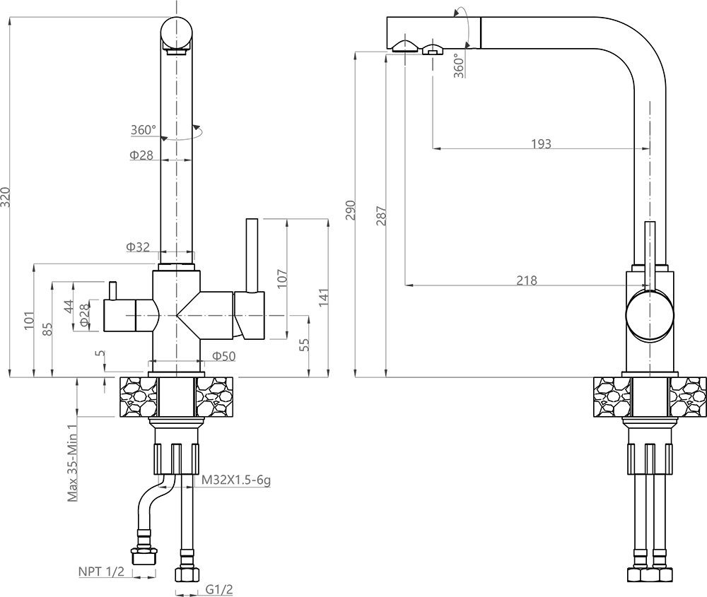 GranFest 3611, смеситель, мрамор, кашемир Смеситель «под гранит»