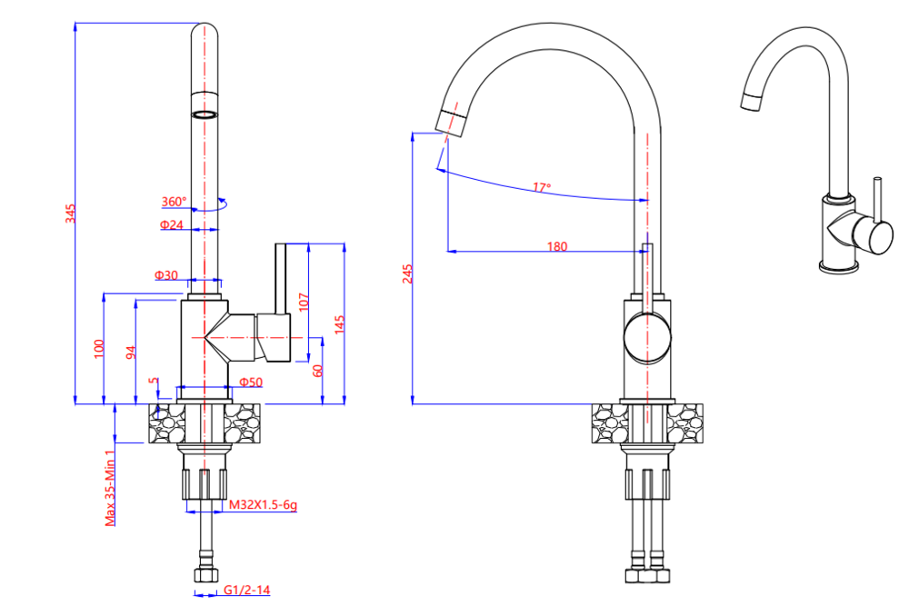 GranFest 3650, смеситель, мрамор, серый Смеситель «под гранит»
