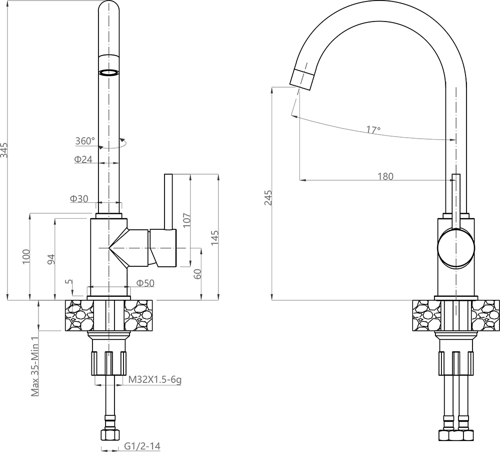 GranFest 3650, смеситель, мрамор, кашемир Смеситель «под гранит»