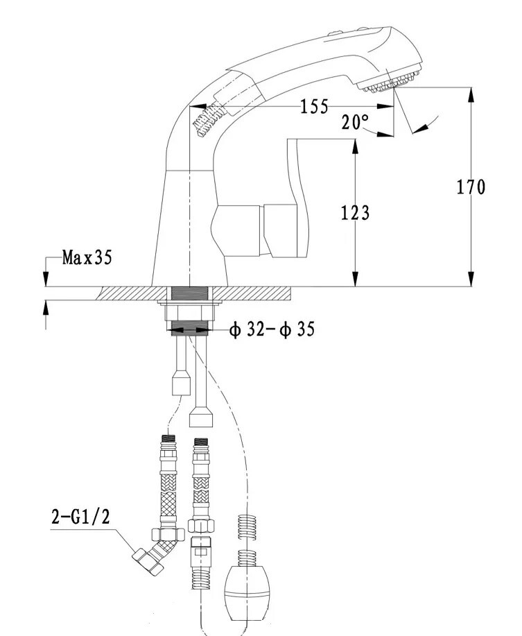 смеситель для кухни, латунь, выдвижной излив, кашемир