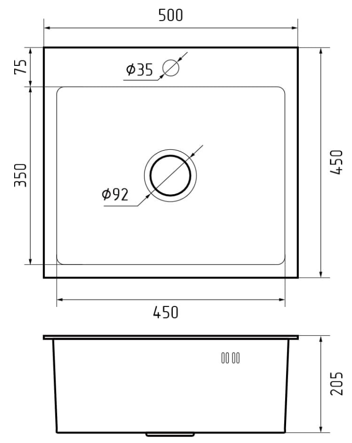 мойка, нержавеющая сталь, 500х450 мм, нержавеющая сталь