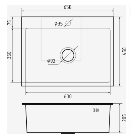 мойка, нержавеющая сталь, 650х450 мм, нержавеющая сталь