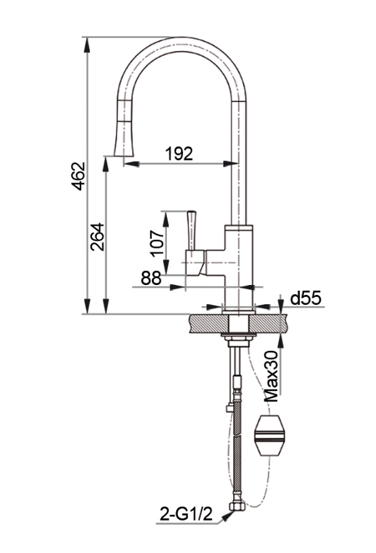 GranFest 7652, смеситель, мрамор, хром Смеситель «под гранит»