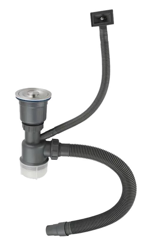 cифон одинарный для мойки с переливом и корзинкой для мусора, нержавеющая сталь