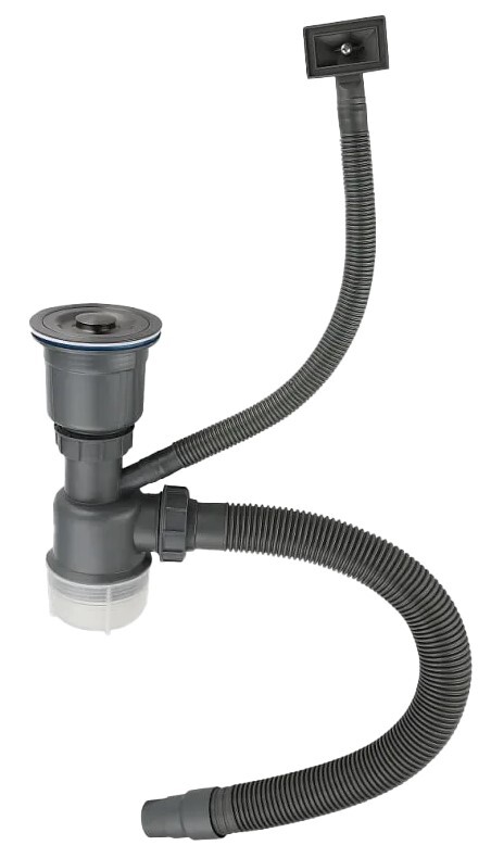 cифон одинарный для мойки с переливом и корзинкой для мусора, PVD графит