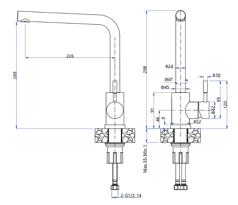 GranFest GF-Z-5411, смеситель, гранит, темно-серый Смеситель «под гранит»
