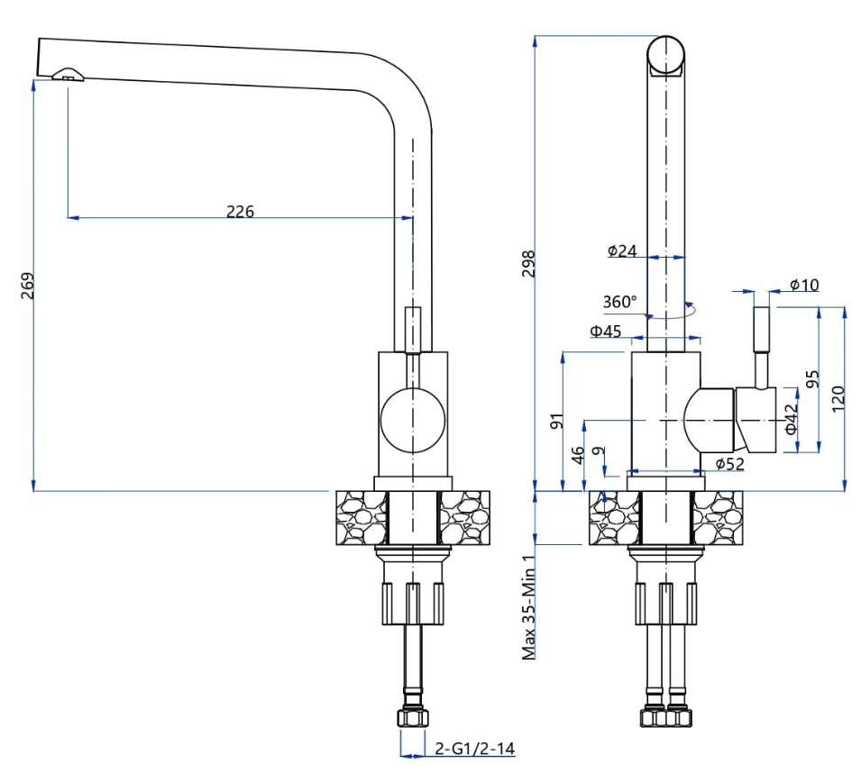 смеситель для кухни, нержавеющая сталь, высокий поворотный излив, нержавеющая сталь