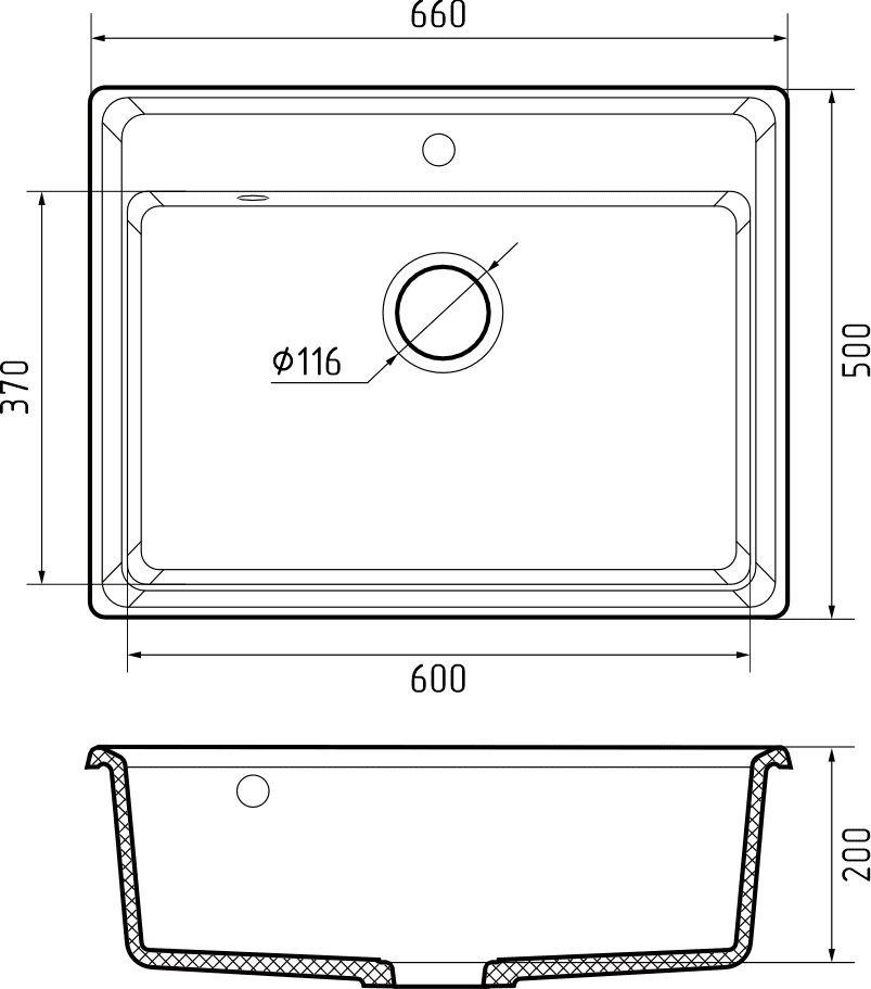 Расстояние от дна до верхней кромки чаши мойки. Оптимальная глубина — 15-18 см. Чем глубже мойка, тем меньше брызг попадет наружу.
