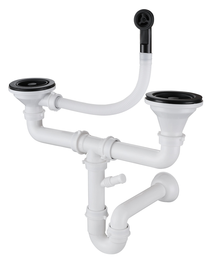 Сифон двойной 3 1/2" с круглым переливом, черный