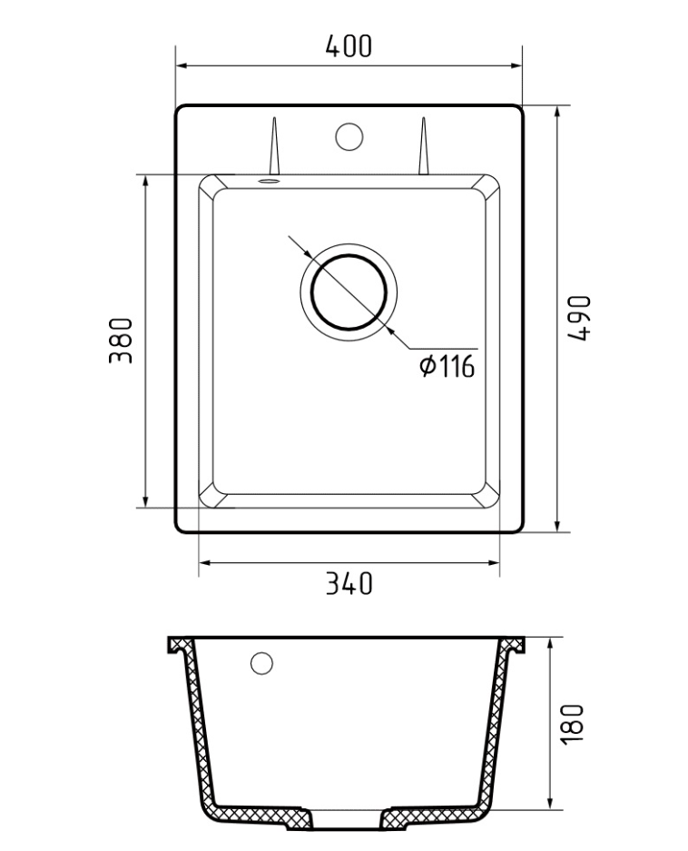 Расстояние от дна до верхней кромки чаши мойки. Оптимальная глубина — 15-18 см. Чем глубже мойка, тем меньше брызг попадет наружу.