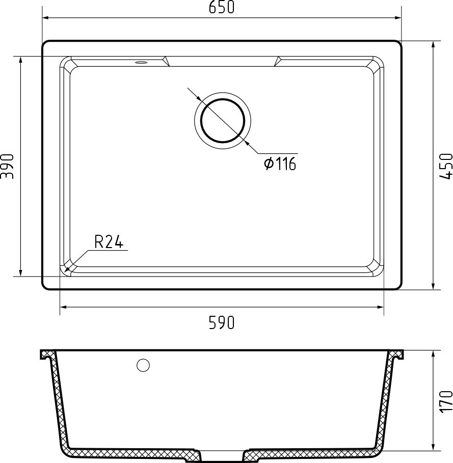 GranFest URBAN 4565, мойка, гранит, черный Мойка гранитная