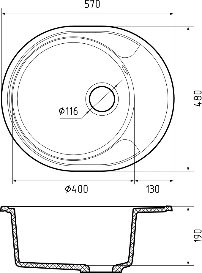 Расстояние от дна до верхней кромки чаши мойки. Оптимальная глубина — 15-18 см. Чем глубже мойка, тем меньше брызг попадет наружу.