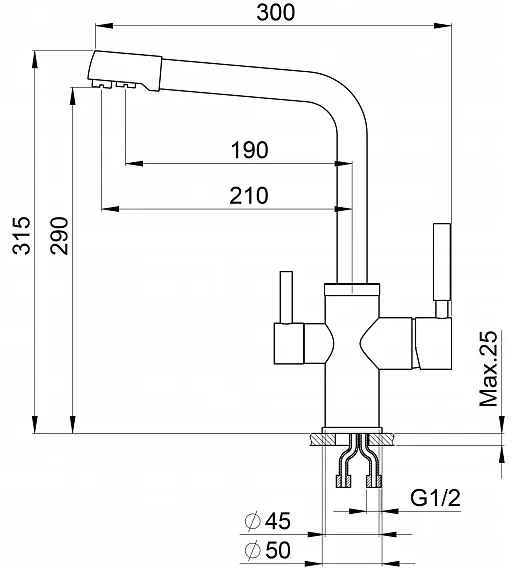 смеситель для кухни, латунь, дополнительный излив для фильтрованной воды, хром