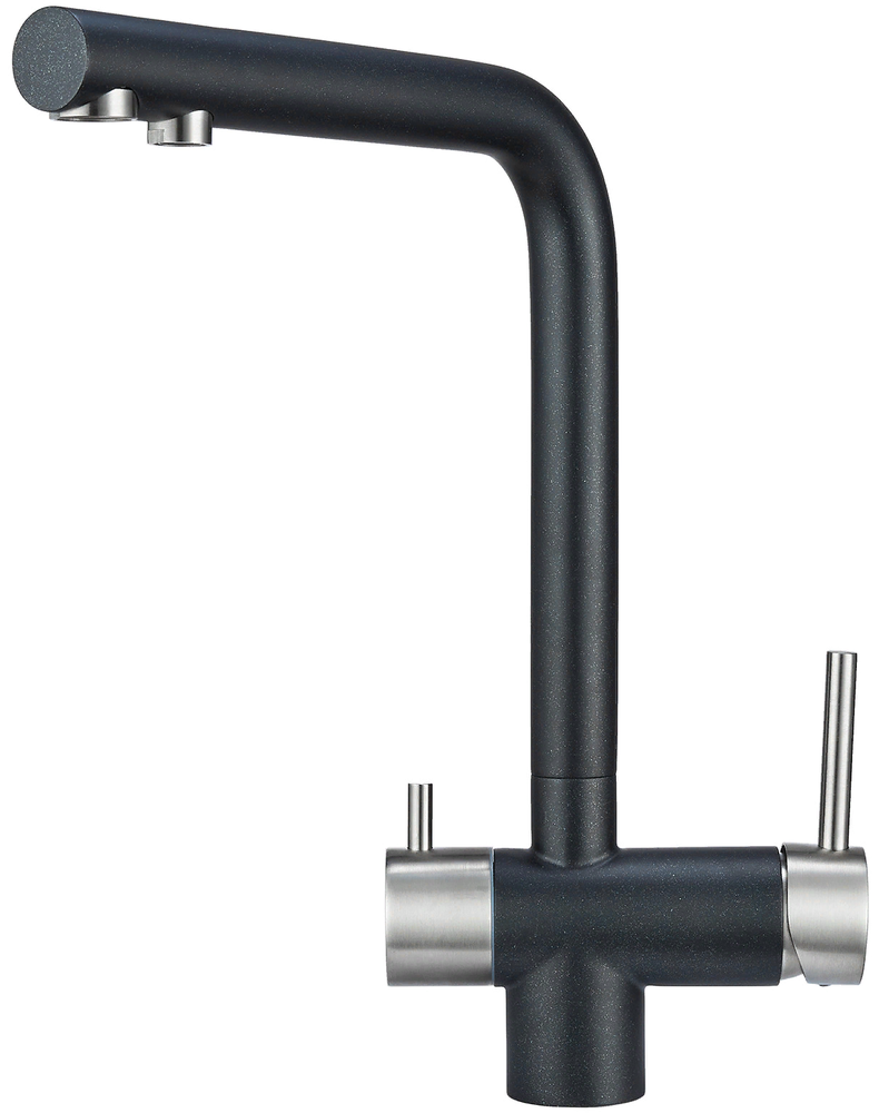 смеситель для кухни, нержавеющая сталь, дополнительный излив для фильтрованной воды, шварц