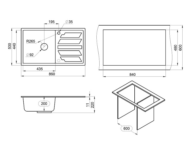 GRANULA 8601 мойка, гранит, алюминиум Мойка гранитная