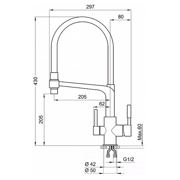 смеситель для кухни, латунь, дополнительный излив для фильтрованной воды, алюминиум