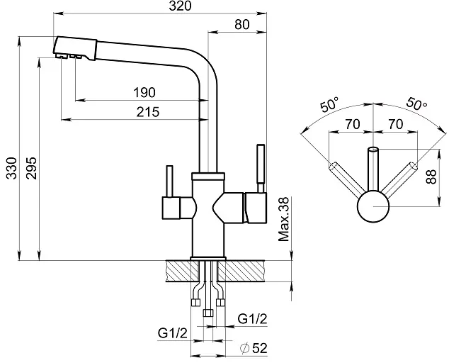 смеситель для кухни, латунь, дополнительный излив для фильтрованной воды, турмалин