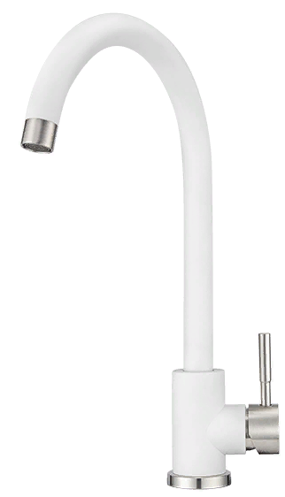 смеситель для кухни, нержавеющая сталь, высокий поворотный излив, белый