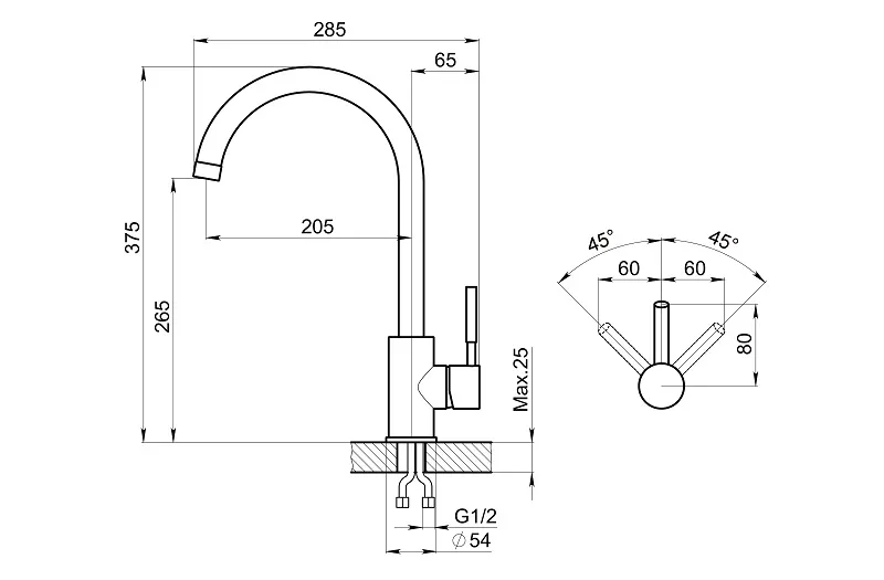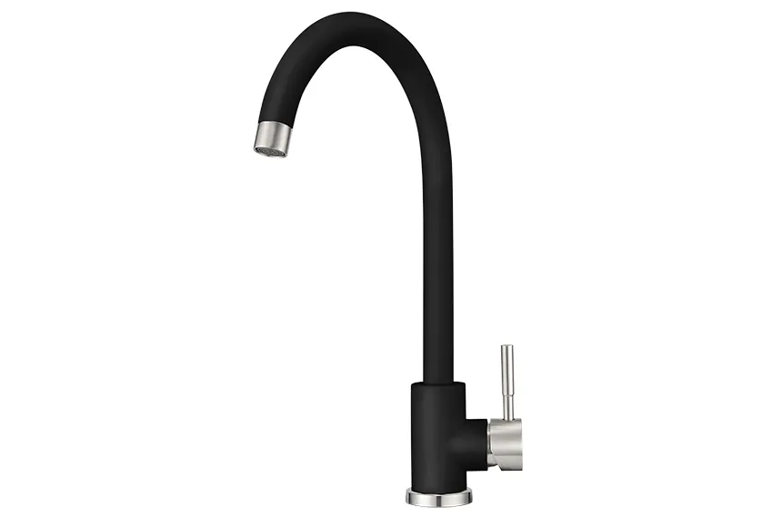 смеситель для кухни, нержавеющая сталь, высокий поворотный излив, турмалин
