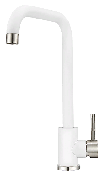 смеситель для кухни, нержавеющая сталь, высокий поворотный излив, белый