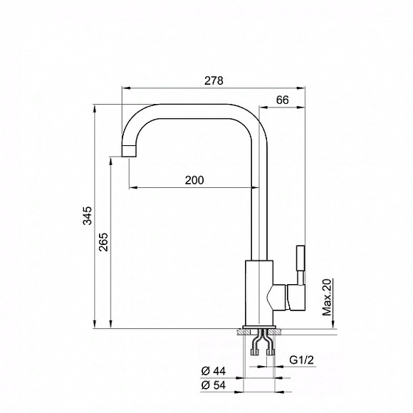 смеситель для кухни, нержавеющая сталь, высокий поворотный излив, черный