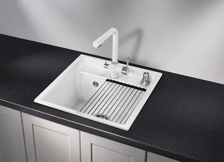 мойка, гранит, 500х510 мм, арктик (белый), комплектация- металлический сифон, ролл-мат и дозатор