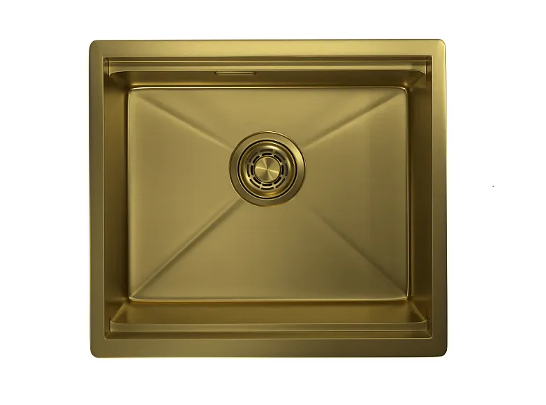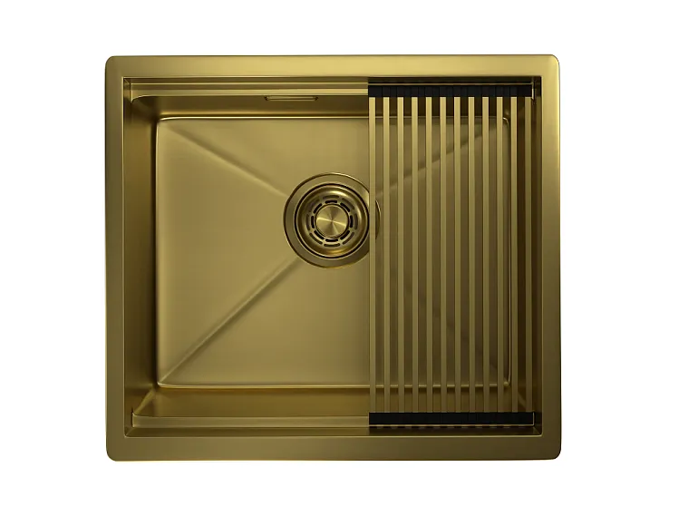 мойка, нержавеющая сталь, 500х445 мм, золото сатин, комплектация - металлический сифон, ролл-мат и дозатор