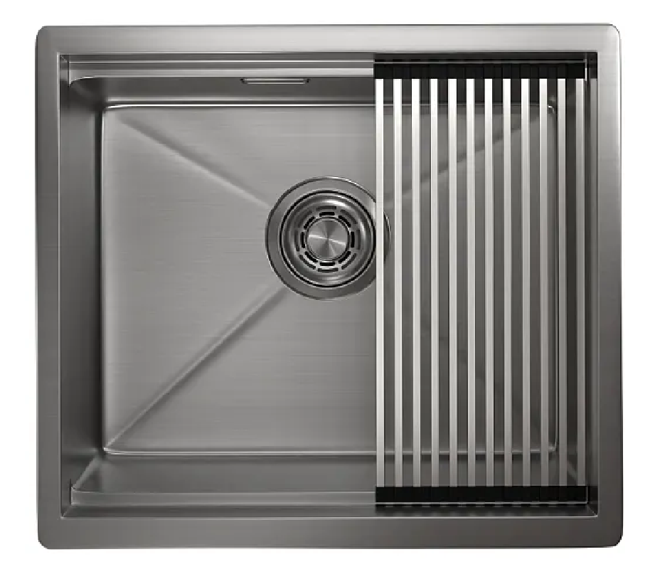 мойка, нержавеющая сталь, 500х445 мм, сталь сатин, комплектация - металлический сифон, ролл-мат и дозатор