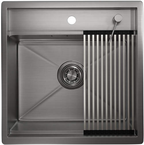 мойка, нержавеющая сталь, 500х510 мм, сталь сатин, комплектация- металлический сифон, ролл-мат и дозатор