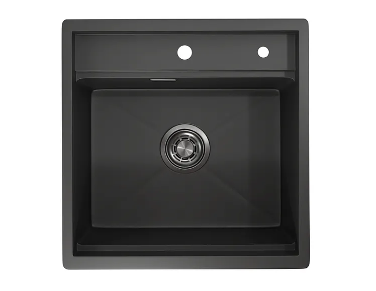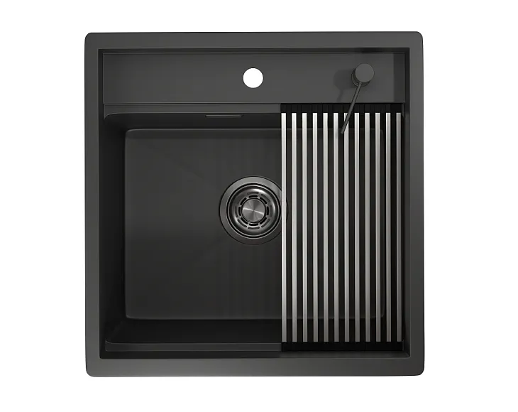 мойка, нержавеющая сталь, 500х510 мм, черный матовый, комплектация - металлический сифон, ролл-мат и дозатор
