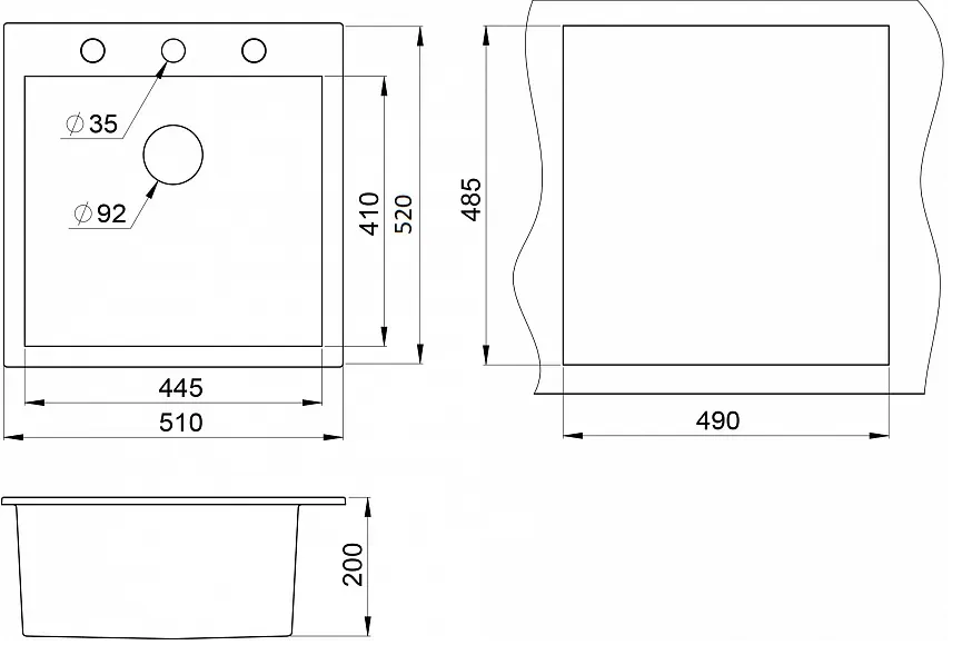 мойка, гранит, 510x520 мм, турмалин