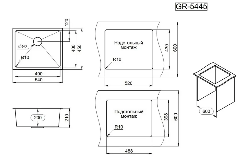 GRANULA 5445U, мойка, нержавеющая сталь, сталь сатин Мойка из нержавеющей стали