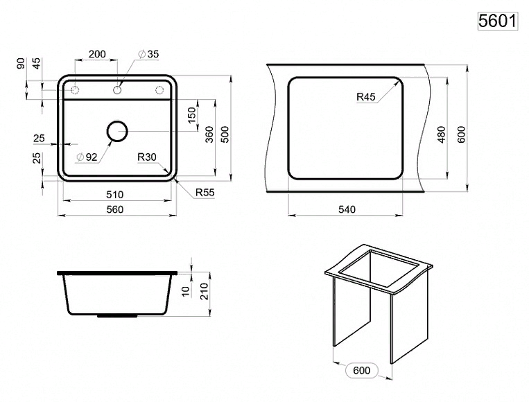 GRANULA 5601 мойка, гранит, бежевый Мойка гранитная