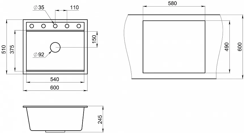 Расстояние от дна до верхней кромки чаши мойки. Оптимальная глубина — 15-18 см. Чем глубже мойка, тем меньше брызг попадет наружу.