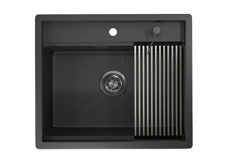 мойка, нержавеющая сталь, 600х510 мм, черный матовый, комплектация - металлический сифон, ролл-мат и дозатор