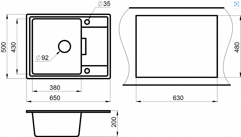 мойка, гранит, 650x500 мм, турмалин