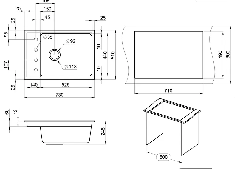 Наличие и расположение крыла кухонной мойки — слева, справа или с обеих сторон. Крыло оборачиваемой мойки можно расположить с любой стороны.