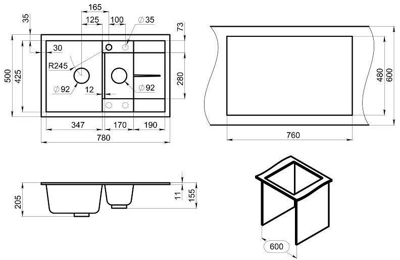 Определяет расположение крыла мойки. Выбирая вариант исполнения мойки, нужно учитывать особенности кухонного гарнитура.