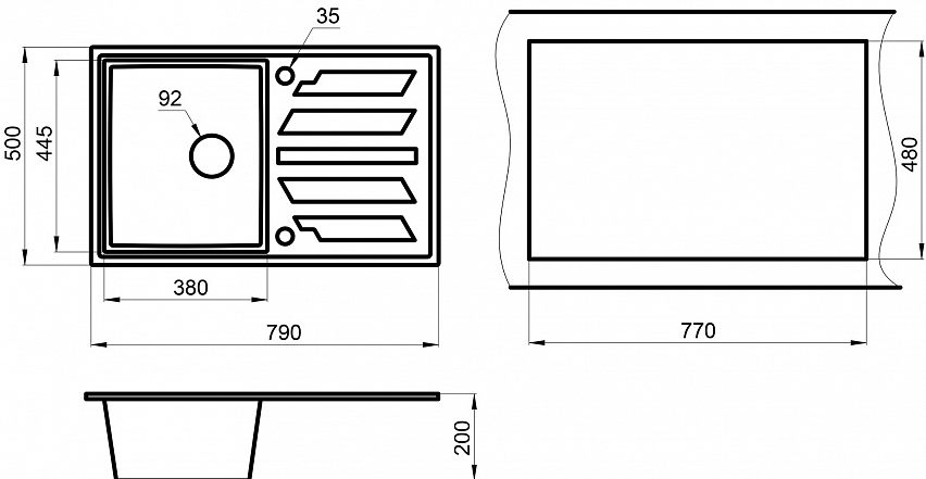 Определяет расположение крыла мойки. Выбирая вариант исполнения мойки, нужно учитывать особенности кухонного гарнитура.