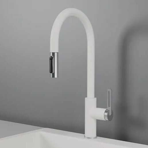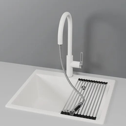 смеситель для кухни, нержавеющая сталь, дополнительный излив для фильтрованной воды, арктик (белый)