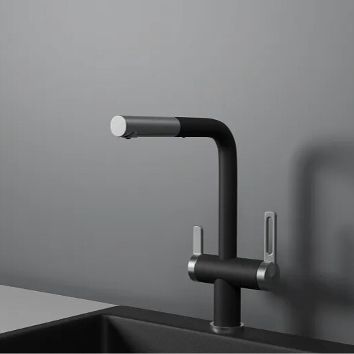 смеситель для кухни, нержавеющая сталь, дополнительный излив для фильтрованной воды, шварц