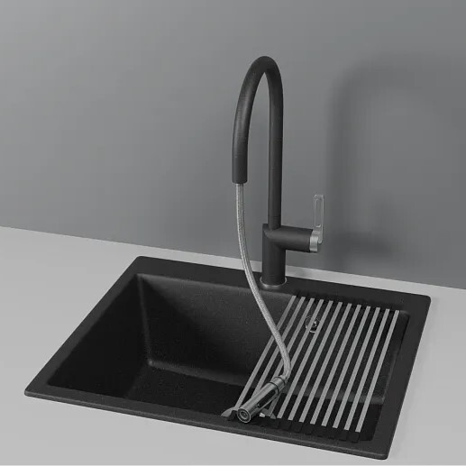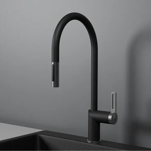смеситель для кухни, нержавеющая сталь, выдвижной излив, черный