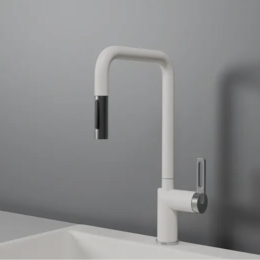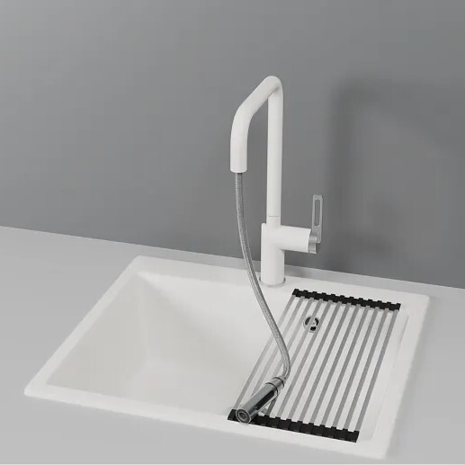 смеситель для кухни, нержавеющая сталь, выдвижной излив, арктик (белый)