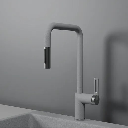 смеситель для кухни, нержавеющая сталь, выдвижной излив, базальт