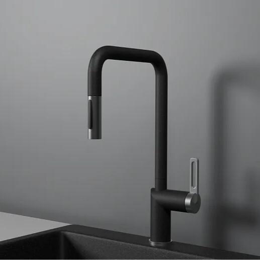 смеситель для кухни, нержавеющая сталь, выдвижной излив, черный