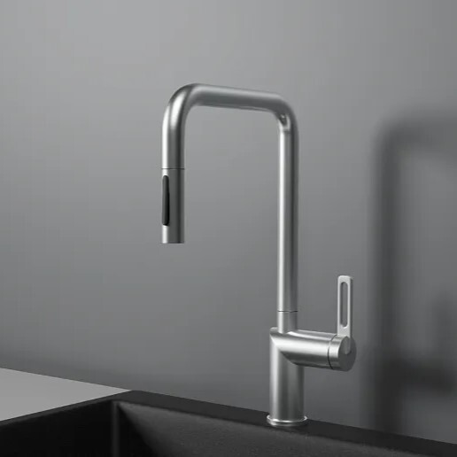 смеситель для кухни, нержавеющая сталь, выдвижной излив, нержавеющая сталь