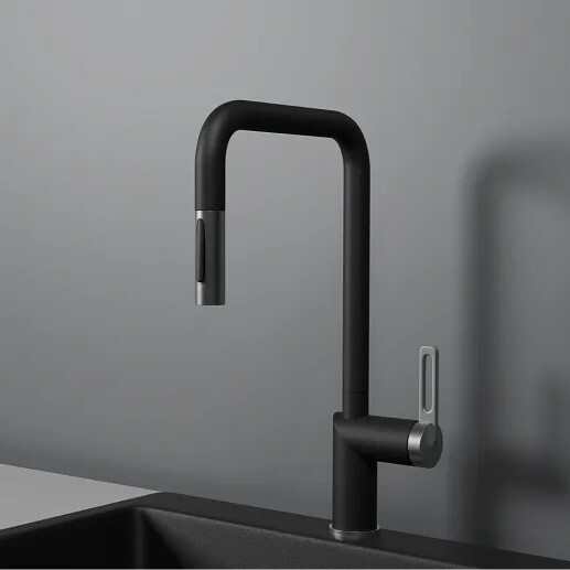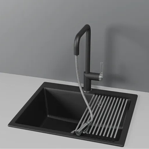 смеситель для кухни, нержавеющая сталь, выдвижной излив, турмалин