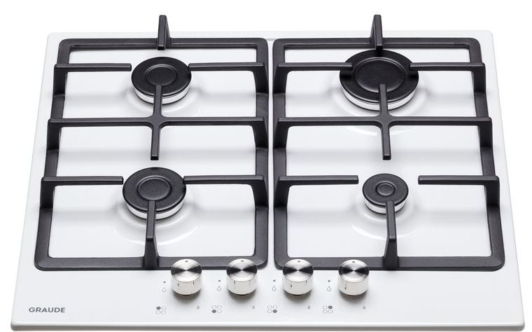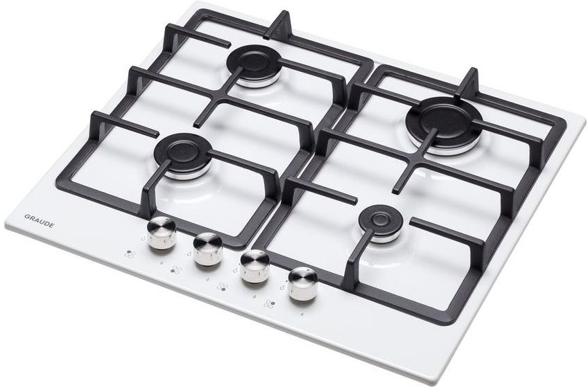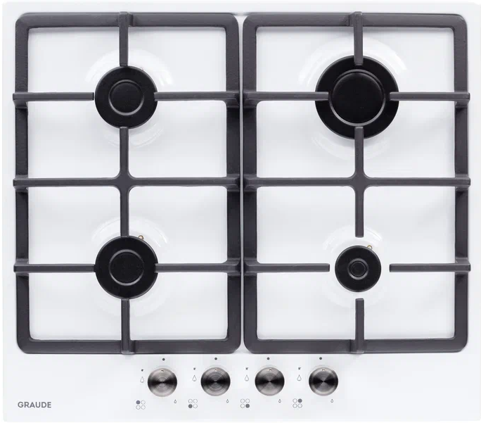 поверхность газовая, 60 см, газ на эмали, 4 конфорки, решетки чугунные, белый